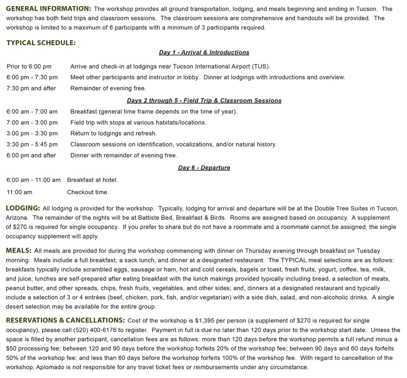 Birdwatching workshops at Battiste Bed, Breakfast & Birds are a wonderful way to relax, learn, and enjoy the birds of southeastern Arizona, any time of year!